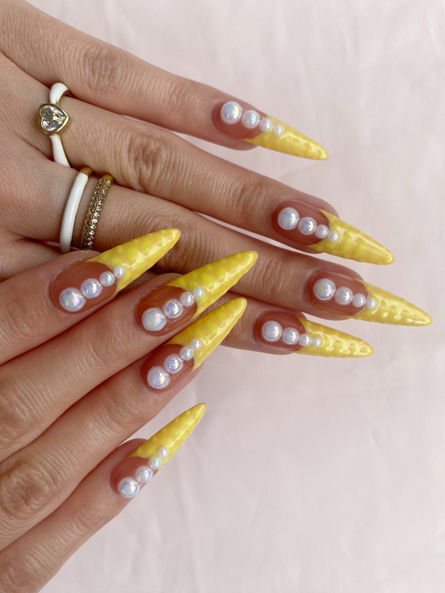 Apply with gel nail glue and seal under a UV lamp for a salon-quality hold that lasts.